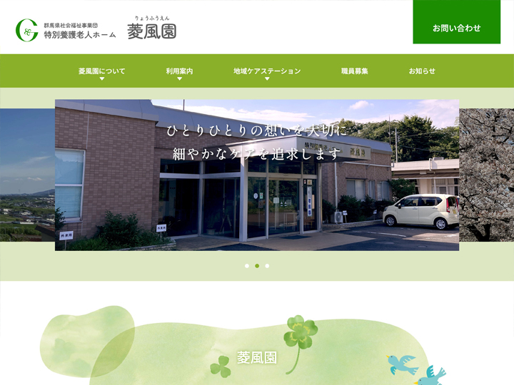 群馬県社会福祉事業団 特別養護老人ホーム 菱風園 WEBサイト