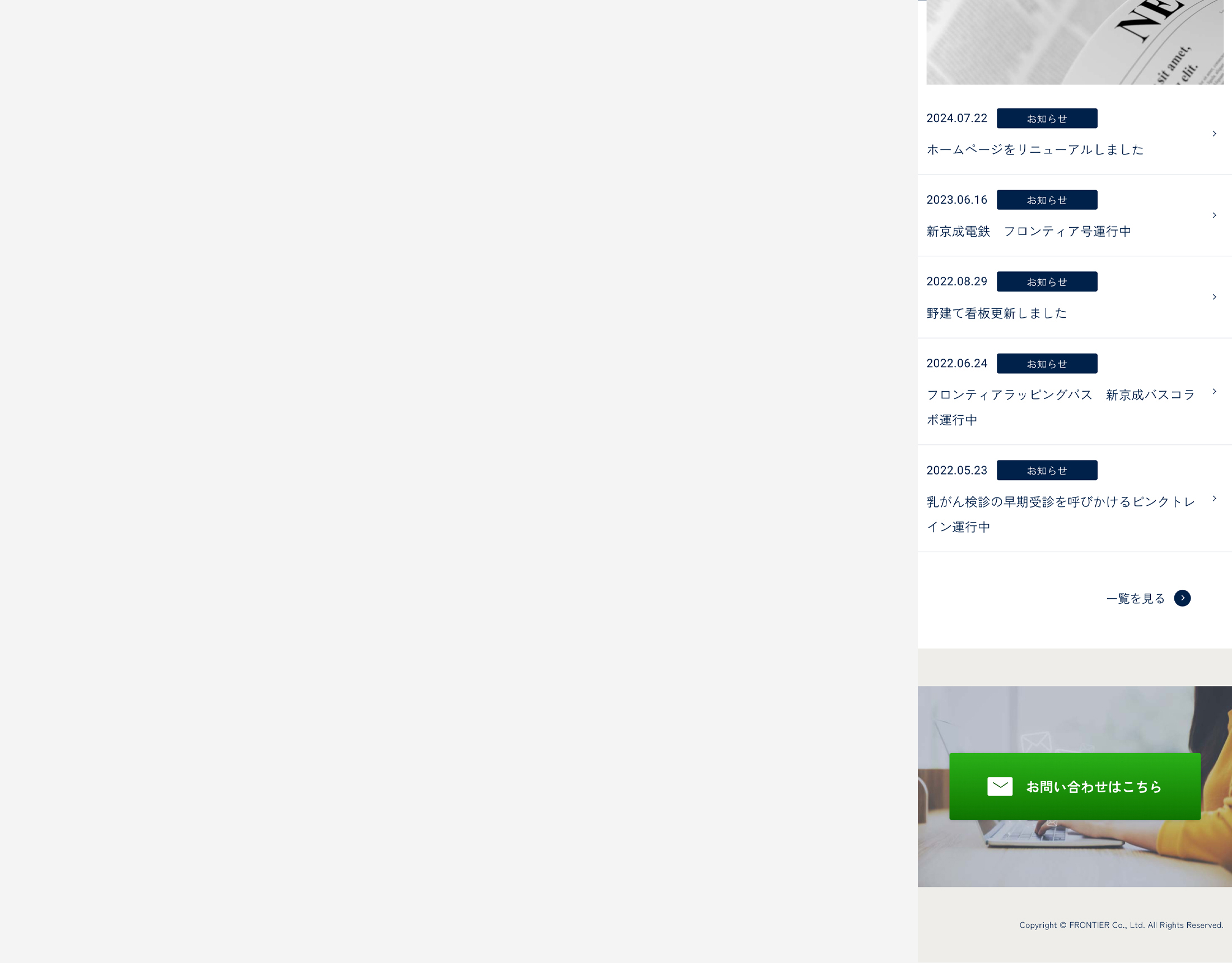 フロンティア WEBサイトJul,2024websiteOpen this web siteBack to indexclient フロンティア様 direction 岡田ジュン(AIR) web design 竹歳ゆきえ coding 神戸善則(SHINME)
