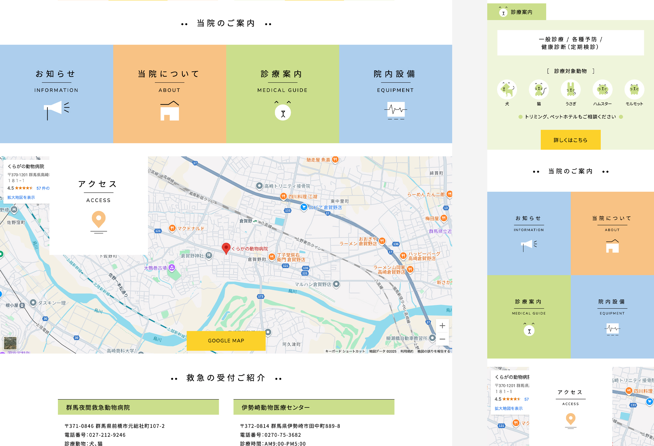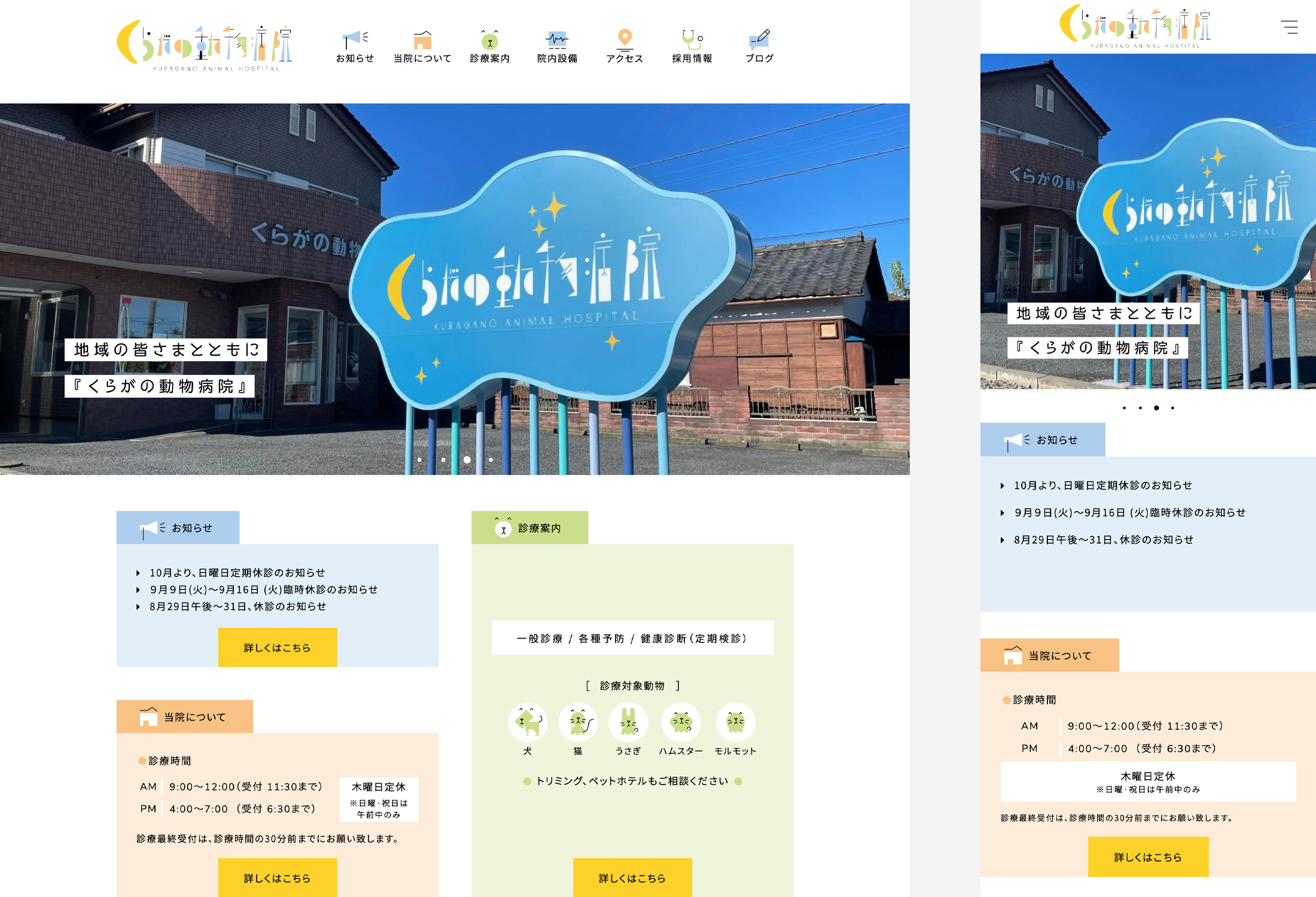 くらがの動物病院 WEBサイトSep,2021websiteOpen this web siteBack to index client くらがの動物病院様 direction 岡田ジュン(AIR) web design 竹歳ゆきえ coding 鈴木一人(AIR) logo design 石井デザイン事務所