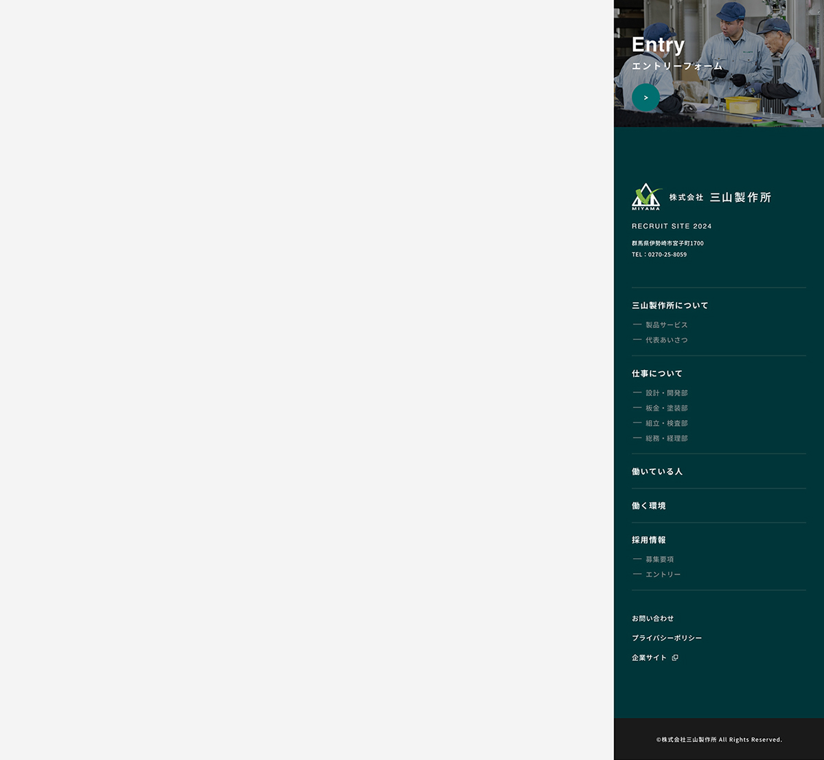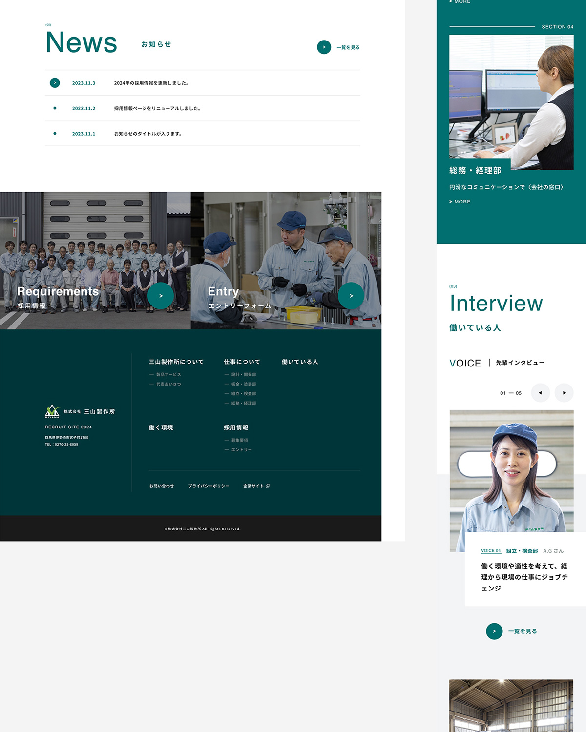 三山製作所 採用情報サイトNov,2023websiteOpen this web siteBack to indexclient 三山製作所様 direction 寺居和美(AIR) / 岡田ジュン(AIR) web design 相川直希 coding 鈴木一人(AIR) photograph 木暮 伸也(Lo.cul.p)