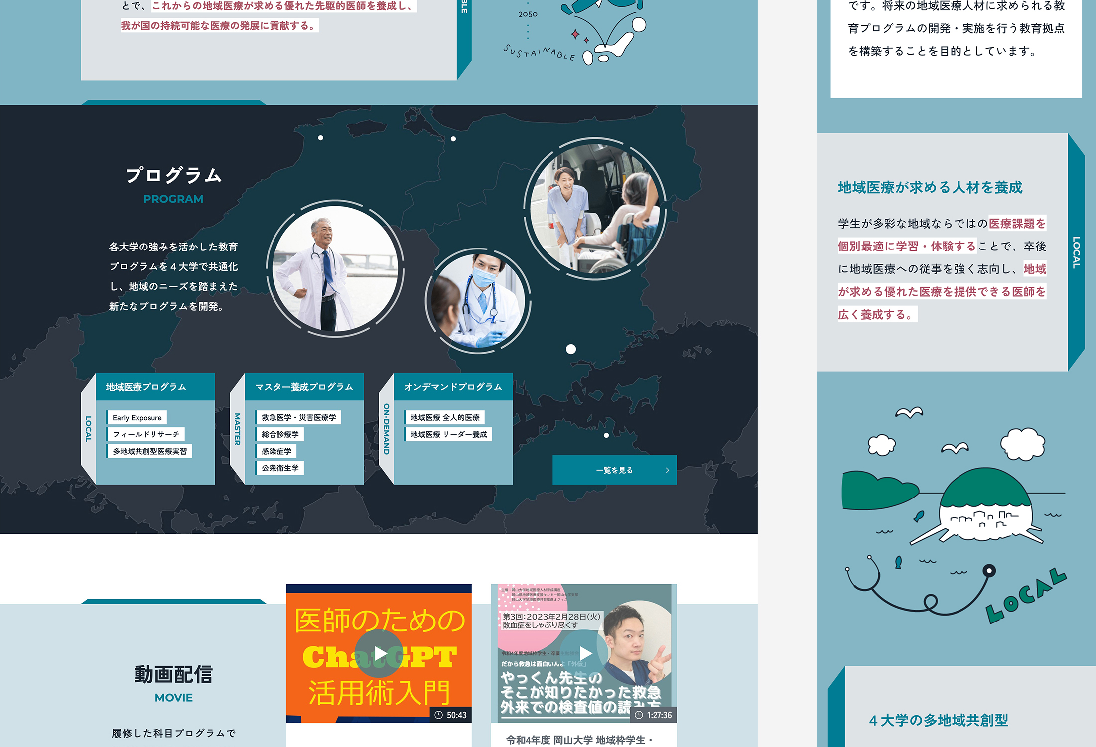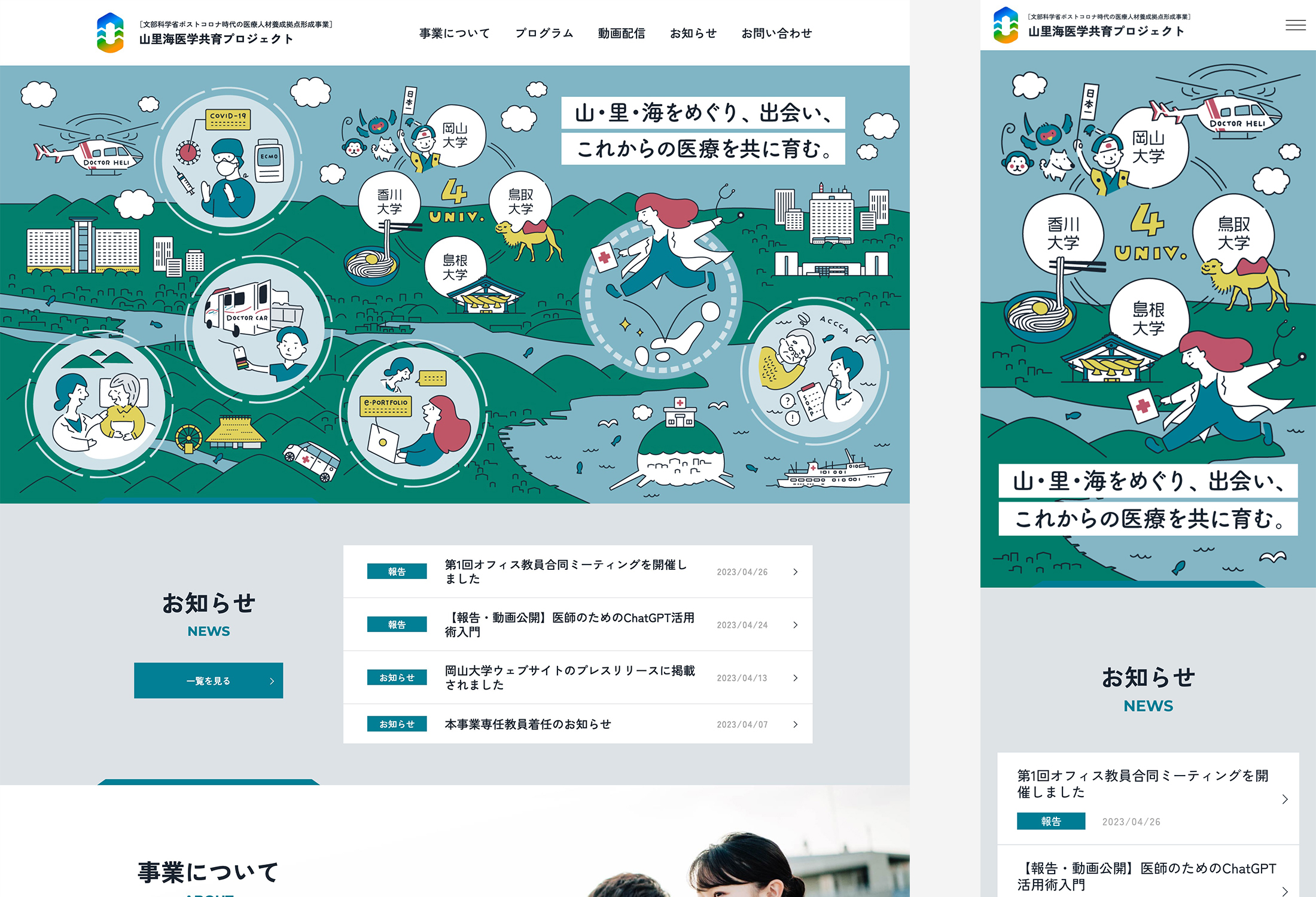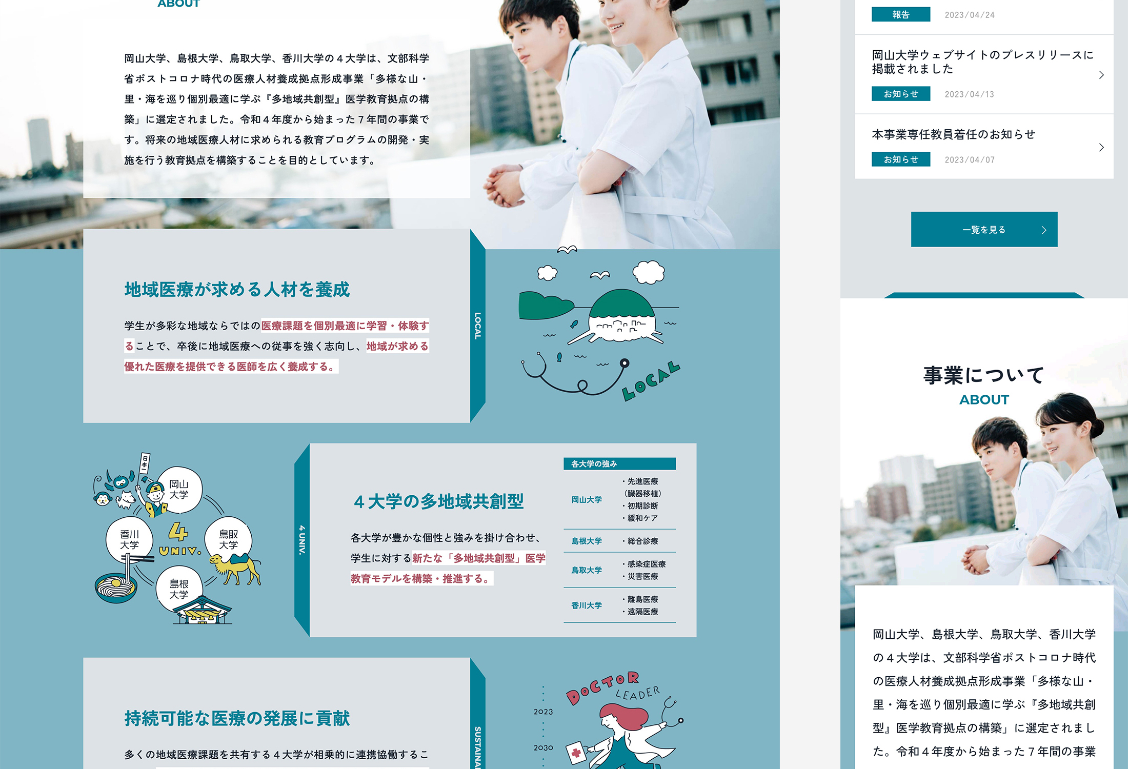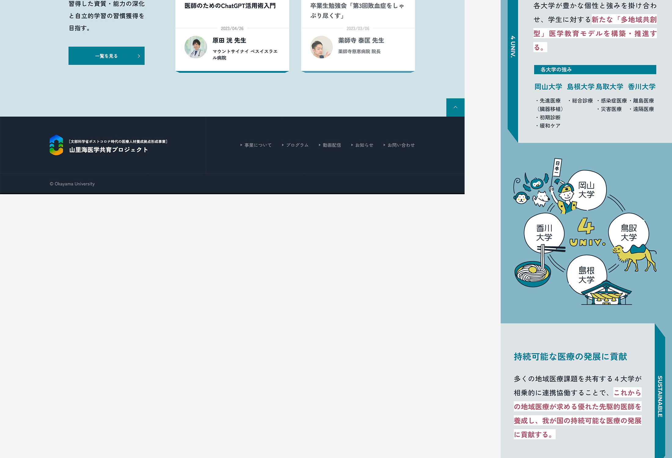 岡山大学 山里海医学共育プロジェクト WEBサイトFeb,2023websiteOpen this web siteBack to indexclient 岡山大学様 direction 岡田ジュン(AIR) logo design Maniackers Design design / illustration 竹歳ゆきえ coding 神戸善則(SHINME)