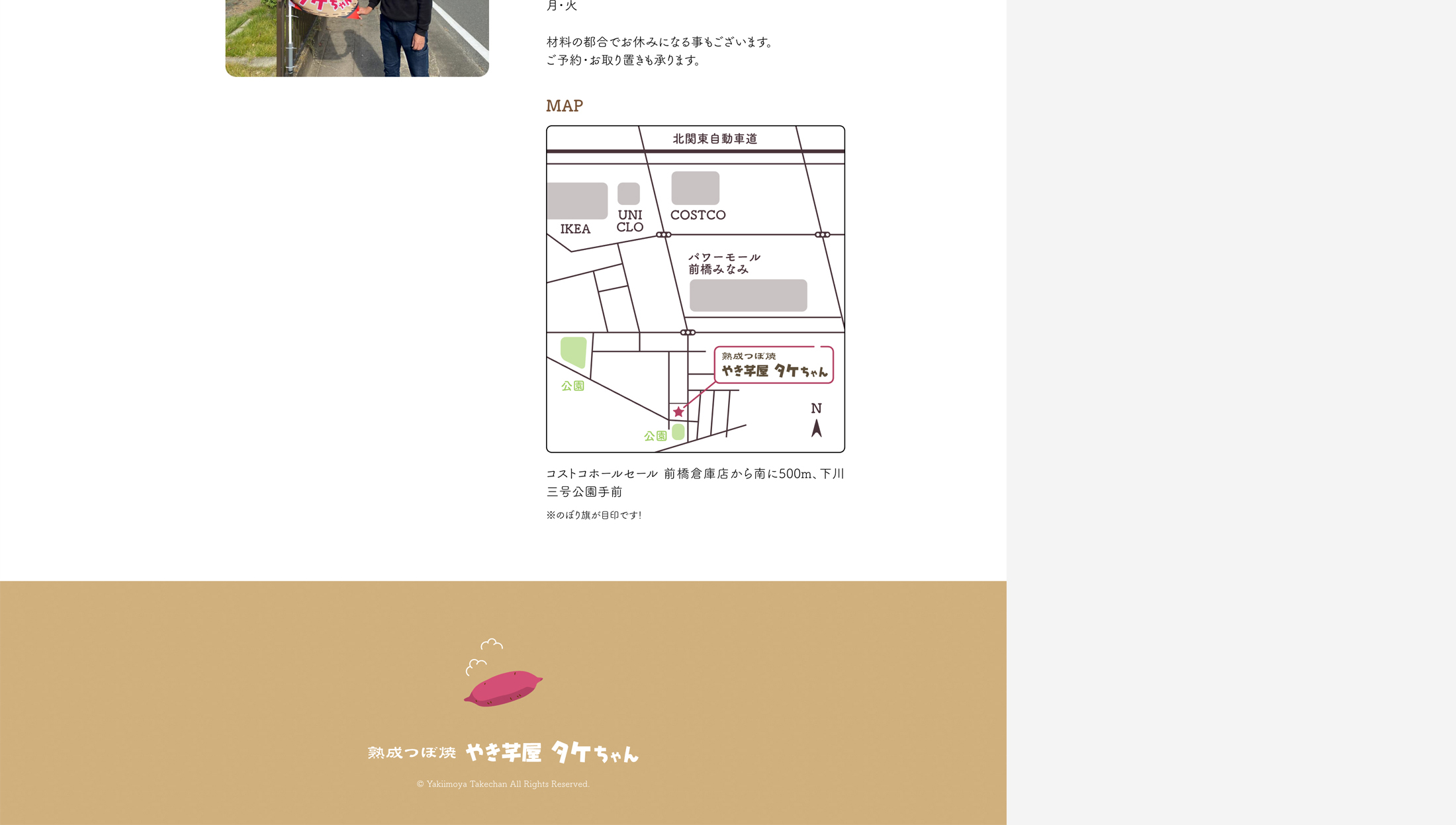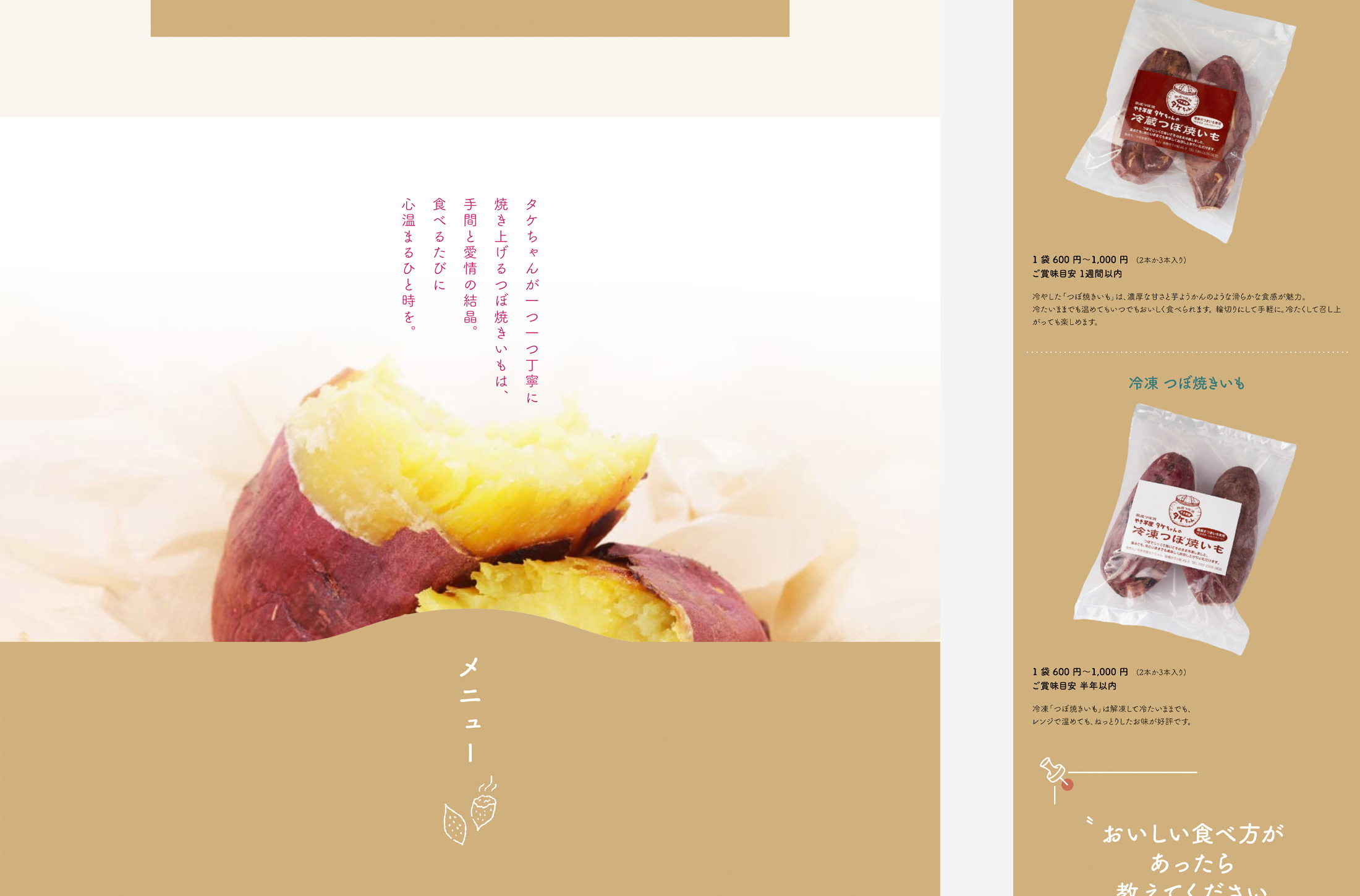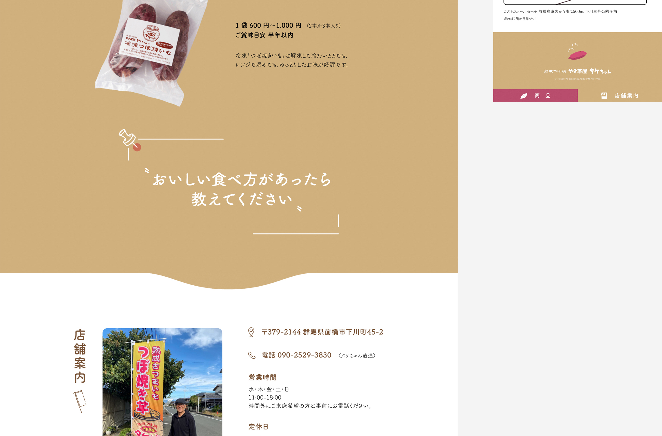 やき芋屋タケちゃん WEBサイトMar,2025websiteOpen this web siteBack to indexclient やき芋屋タケちゃん様 design 長江剛 direction 岡田ジュン(AIR) logo design 株式会社ヤマザキ