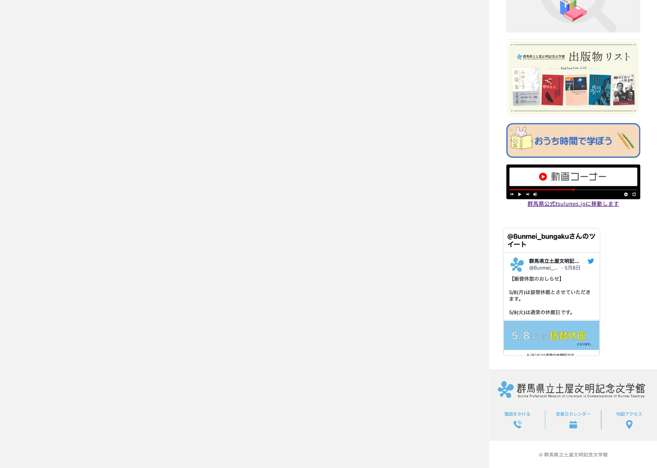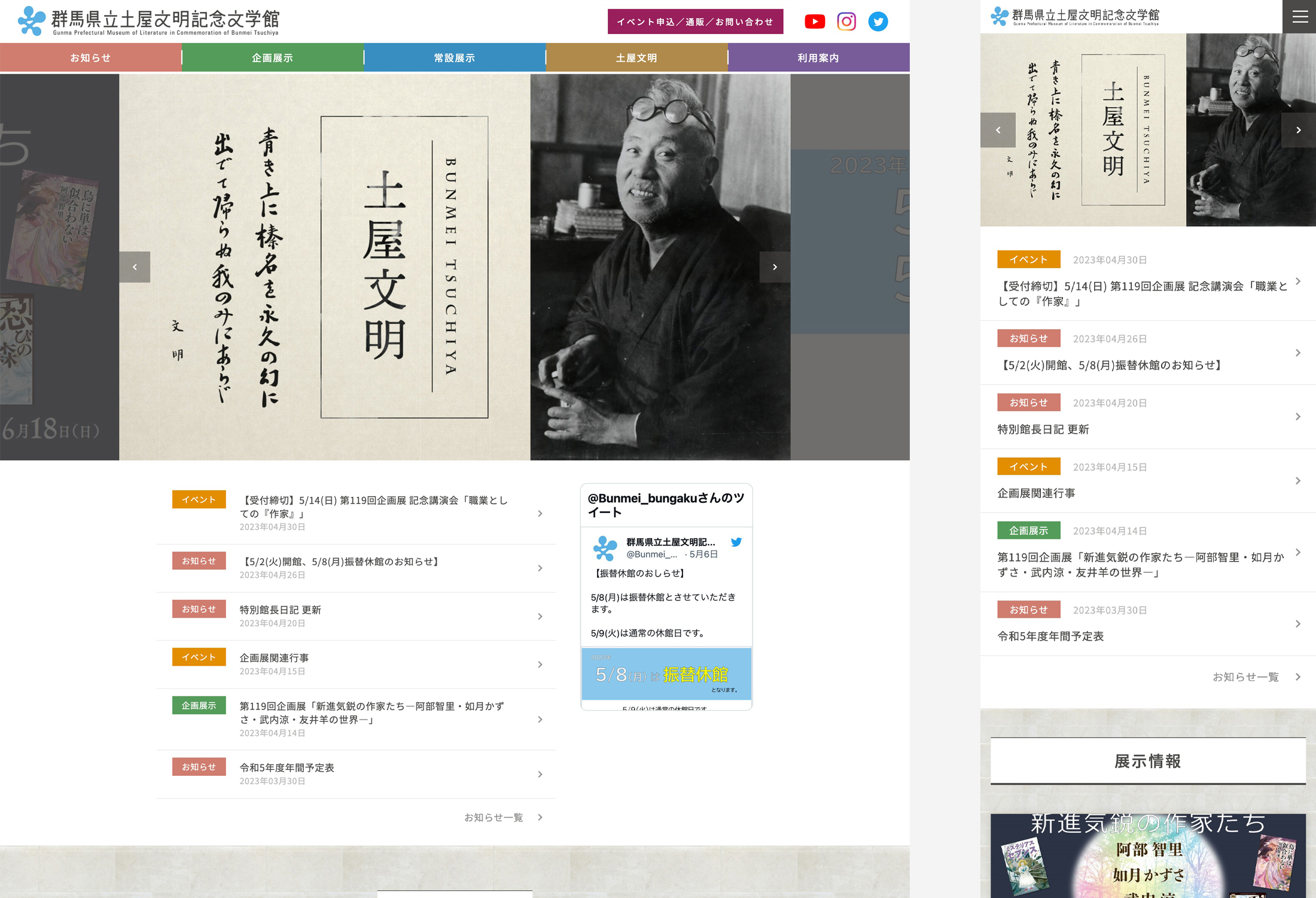 群馬県立土屋文明記念文学館 WEBサイトApr,2021websiteOpen this web siteBack to indexclient 群馬県立土屋文明記念文学館様 direction 岡田ジュン(AIR) design 竹歳ゆきえ coding 神戸善則(SHINME)