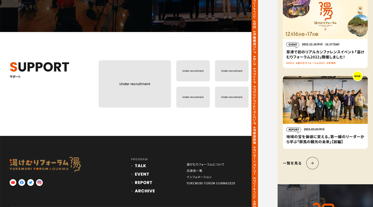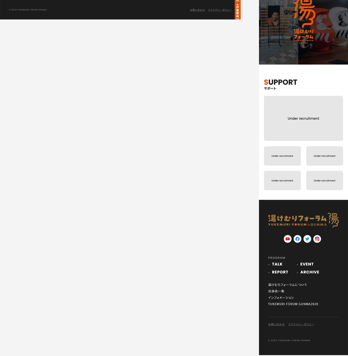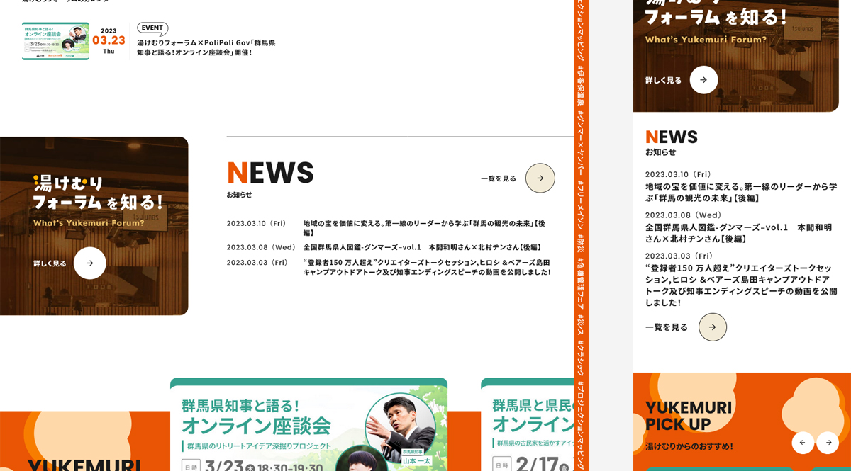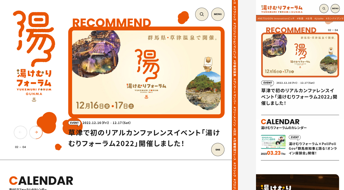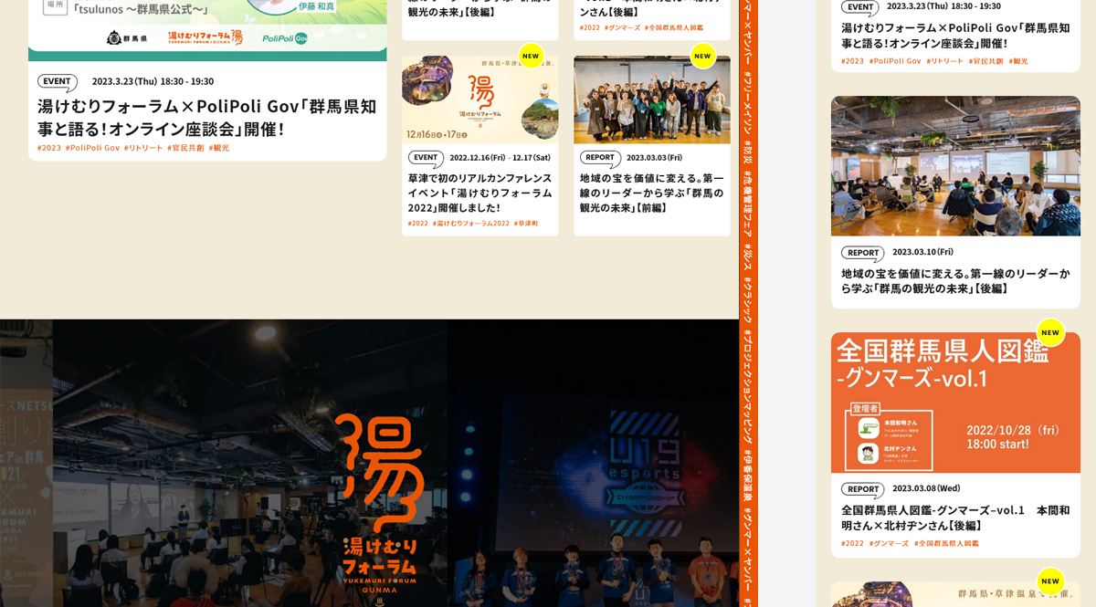 湯けむりフォーラム2021 WEBサイトSep,2021websiteOpen this web siteBack to indexclient 群馬県様 direction 岡田ジュン(AIR) / 寺居和美(AIR) logo design Maniackers Design design 相川直希 coding 鈴木一人(AIR)